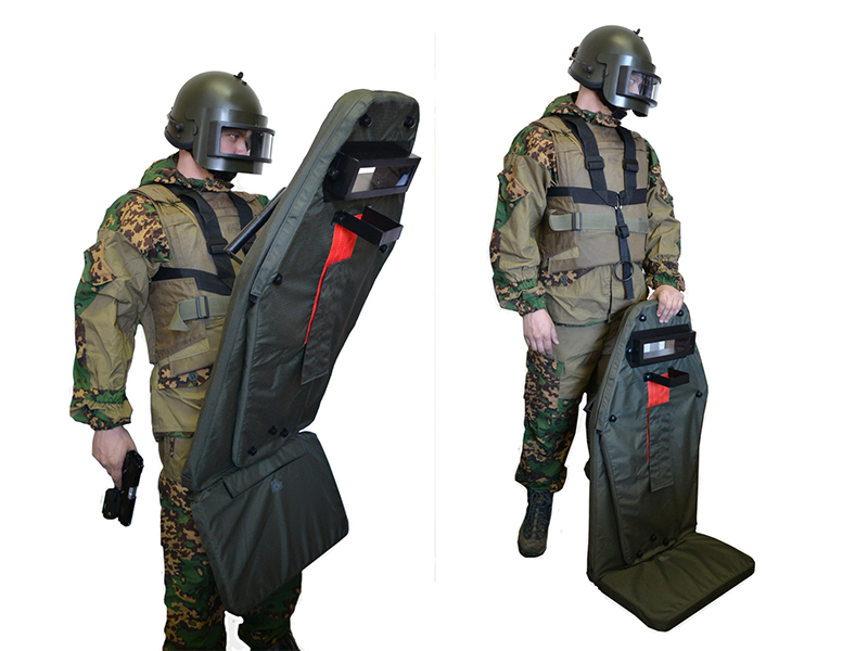 本製品は原寸大で製作されています シールド材質:合板 バイザー材質:スチール2mm 小窓材質:ポリカーボネート4mm 専用ハーネスが付属します。 色:ODまたはブラック 重量:18kg 別売りの専用シールドランプを取り付けることができます ・パッケージ内容 シールド ハーネス